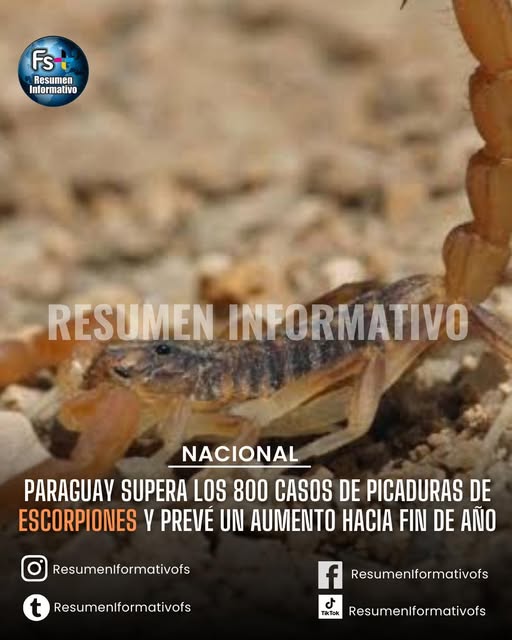 PARAGUAY SUPERA LOS 800 CASOS DE PICADURAS DE ESCORPIONES Y PREVÉ UN AUMENTO HACIA FIN DE AÑO