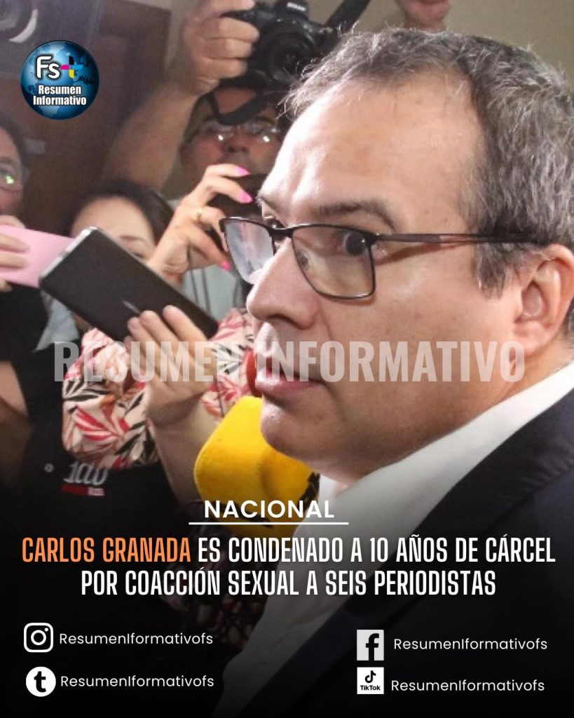 Un tribunal de sentencia condenó a 10 años de cárcel al periodista Carlos Granada, ex gerente del Grupo Albavisión, por los hechos de coacción sexual y violación, acoso sexual y coacción.