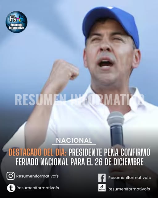 El presidente de la República, Santiago Peña, anunció que el próximo 26 de diciembre será feriado nacional en todo el territorio paraguayo, extendiendo así las celebraciones navideñas.