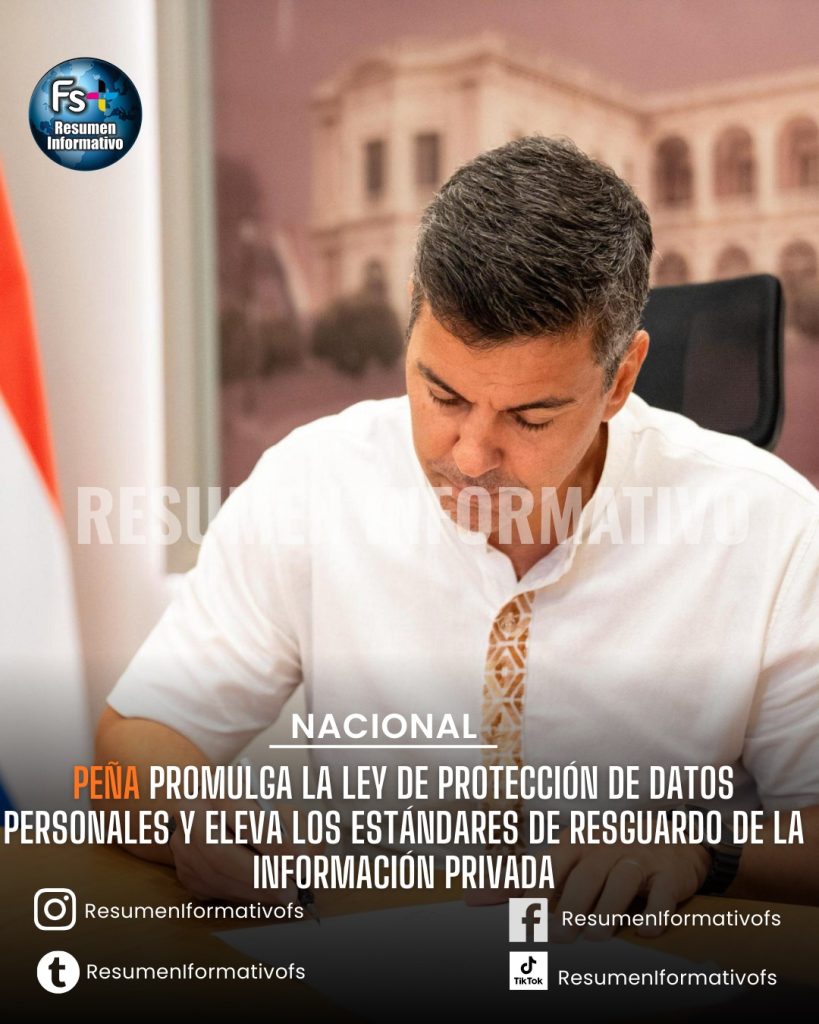 El presidente de la República, Santiago Peña, promulgó hoy la Ley N.º 7593/2025 “De Protección de Datos Personales en la República del Paraguay”, una normativa histórica que establece un marco legal moderno para garantizar el uso responsable de la información personal de todos los ciudadanos.