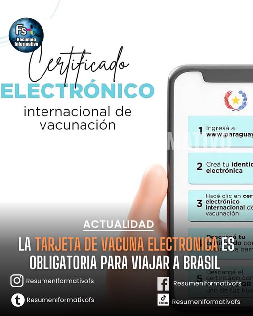 ¡ATENTIS! LA TARJETA DE VACUNA ELECTRÓNICA ES OBLIGATORIA PARA VIAJAR A BRASIL