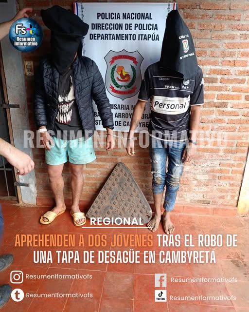 En las primeras horas de este miércoles 10 de diciembre, agentes de la Comisaría 115° del barrio Arroyo Porã lograron la aprehensión de dos jóvenes sindicados como responsables del hurto de una pesada tapa de registro de desagüe fluvial, en el barrio Tacuarí de Cambyreta.