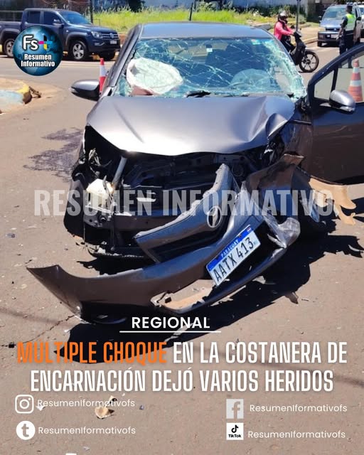 Un accidente de tránsito registrado en la mañana de este viernes dejó como saldo varias personas lesionadas y cuantiosos daños materiales sobre la avenida Costanera República del Paraguay, en la ciudad de Encarnación.