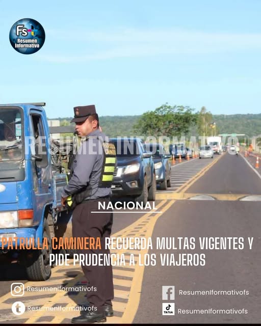 La Patrulla Caminera emitió un recordatorio dirigido a los automovilistas y viajeros, instando a respetar las normas de tránsito y a conducir con prudencia, atendiendo a que las infracciones conllevan multas económicas de alto costo, establecidas en base al jornal mínimo vigente.