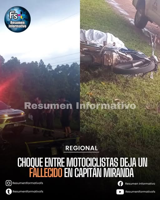 CHOQUE ENTRE MOTOCICLISTAS DEJA UN FALLECIDO EN CAPITÁN MIRANDA