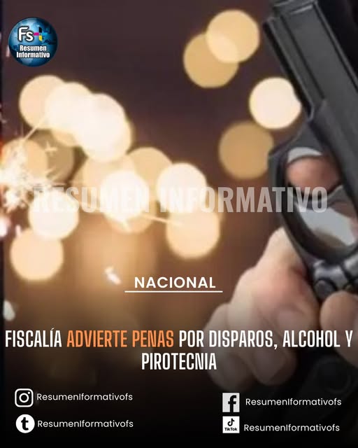 FISCALÍA ADVIERTE PENAS POR DISPAROS, ALCOHOL Y PIROTECNIA.