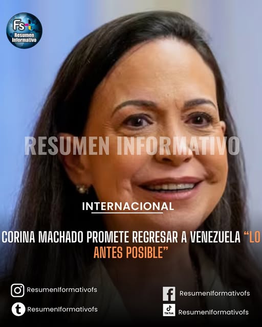 CORINA MACHADO PROMETE REGRESAR A VENEZUELA “LO ANTES POSIBLE”