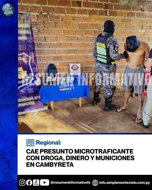Un operativo del Departamento Especializado Contra el Narcotráfico de la Policía Nacional permitió la detención de un hombre y la incautación de drogas, dinero y municiones durante un allanamiento realizado en el barrio La Amistad de Cambyretá, departamento de Itapúa.