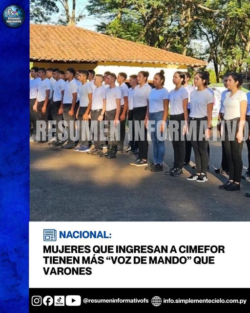 El coronel detalló que las cimeforistas tienen la misma formación que sus camaradas varones, incluyendo tareas de manejo de armas, prácticas de tiro y educación física.
