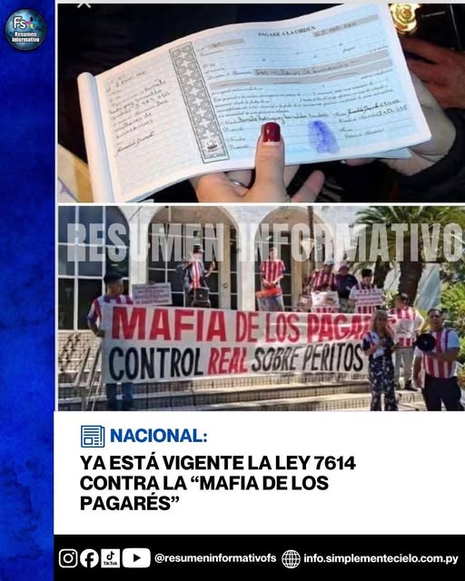 YA ESTÁ VIGENTE LA LEY 7614 CONTRA LA “MAFIA DE LOS PAGARÉS”