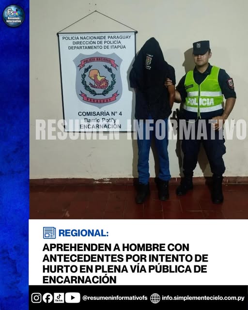 APREHENDEN A HOMBRE CON ANTECEDENTES POR INTENTO DE HURTO EN PLENA VÍA PÚBLICA DE ENCARNACIÓN