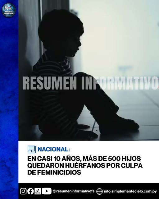 Desde la promulgación de la Ley Nº 5777/16 de protección integral a las mujeres contra toda forma de violencia, se contabilizan 563 hijos que quedaron en situación de orfandad tras la muerte de sus progenitoras, esto entre el 2017 y el 2025.