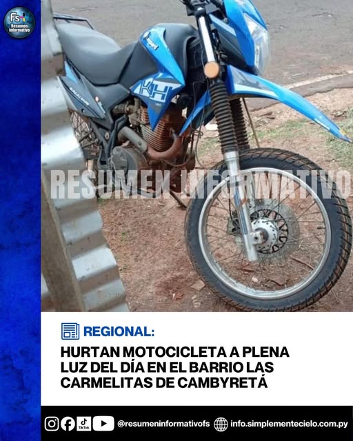 Un nuevo hecho de inseguridad se registró en el barrio Las Carmelitas de Cambyretá, donde Carlos González fue víctima del hurto de su motocicleta, herramienta fundamental para su trabajo diario. El episodio causó indignación entre los vecinos, ya que ocurrió cuando aún era de día y en un sector considerado tranquilo.