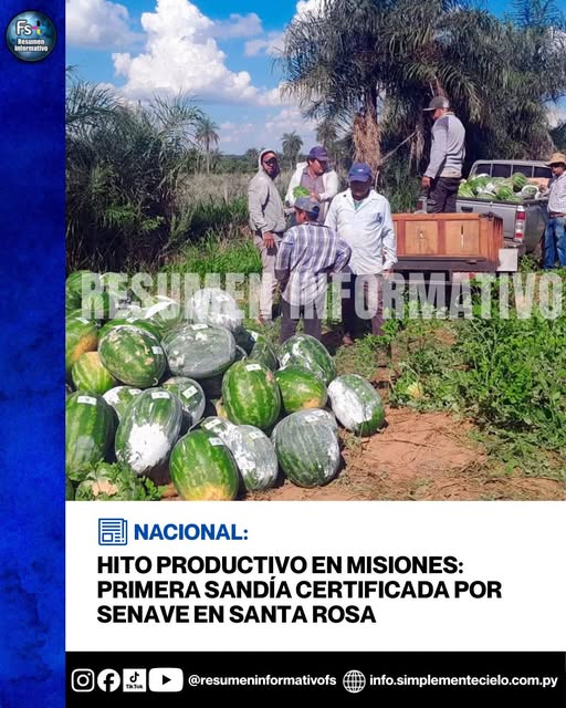 Productores de Santa Rosa, departamento de Misiones, marcaron un antes y un después en la agricultura local al lograr la primera certificación oficial de sandía otorgada por el Servicio Nacional de Calidad y Sanidad Vegetal y de Semillas (Senave) en la zona.