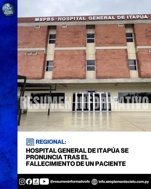 El Hospital General de Itapúa emitió un comunicado público en el que lamenta profundamente el fallecimiento de un paciente atendido en la institución y expresa su acompañamiento y respeto a los familiares y seres queridos en este momento de dolor.