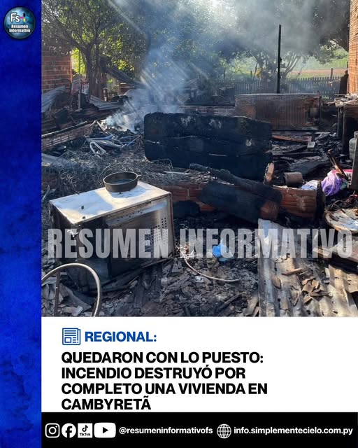 Un voraz incendio consumió en su totalidad una vivienda ubicada en el barrio Santa Rita del distrito de Cambyretá durante la madrugada de este miércoles. En el lugar también funcionaba una peluquería, cuyas herramientas y equipos de trabajo fueron totalmente destruidos por las llamas.