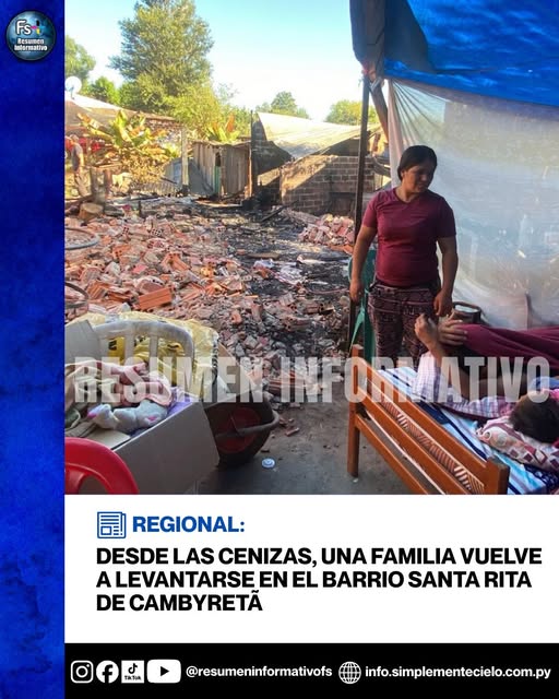 A días del devastador incendio que redujo a cenizas su vivienda, una humilde familia del barrio Santa Rita de Cambyretã lucha por volver a ponerse de pie.