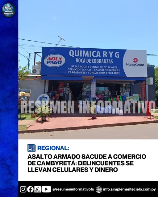 ASALTO ARMADO SACUDE A COMERCIO DE CAMBYRETÁ: DELINCUENTES SE LLEVAN CELULARES Y DINERO