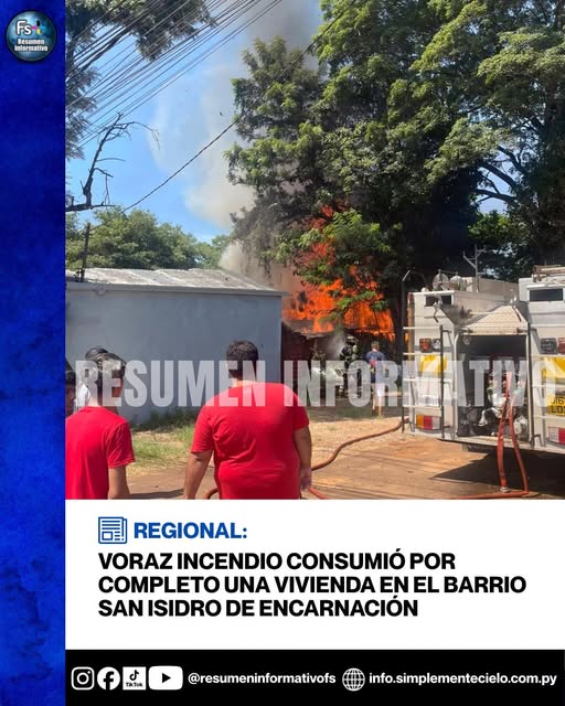 Un devastador incendio redujo a cenizas una vivienda en la mañana de este martes en el barrio San Isidro Etapa 6 de Encarnación, dejando a una familia sin hogar y generando gran conmoción entre los vecinos del sector.