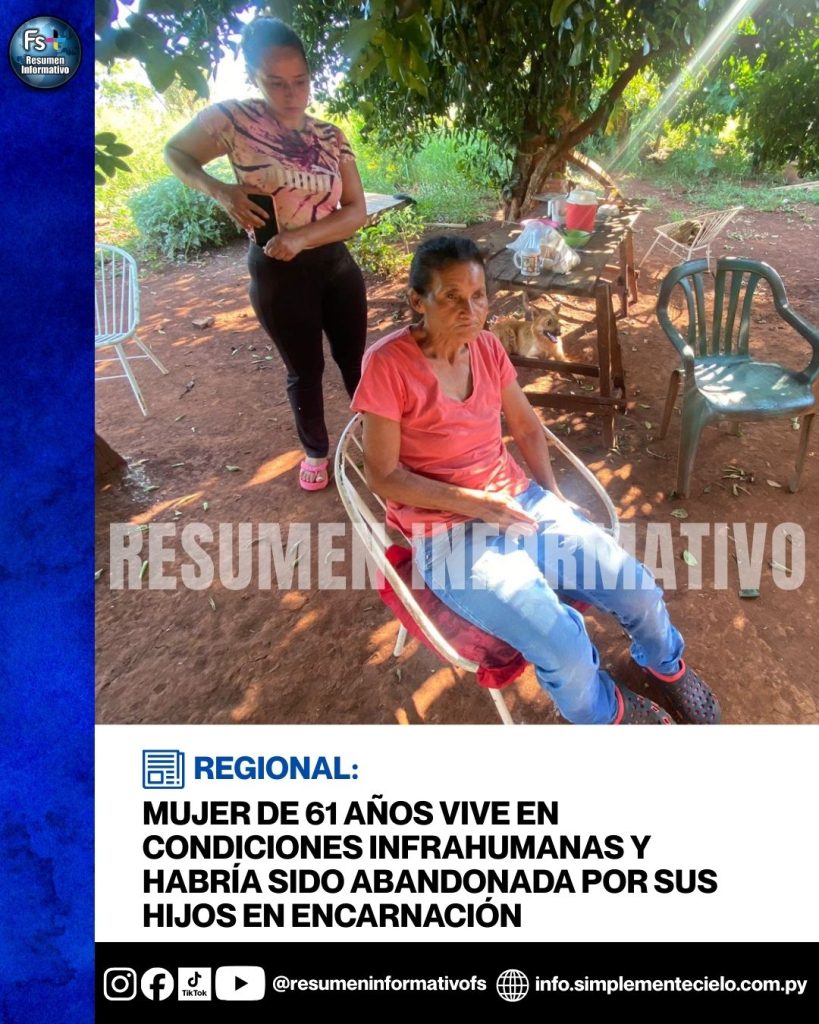 Una situación profundamente conmovedora y alarmante salió a la luz en las últimas horas en el barrio Itangu’a de la ciudad de Encarnación, donde una mujer de 61 años vive en condiciones infrahumanas, enferma y completamente abandonada por sus propios hijos.