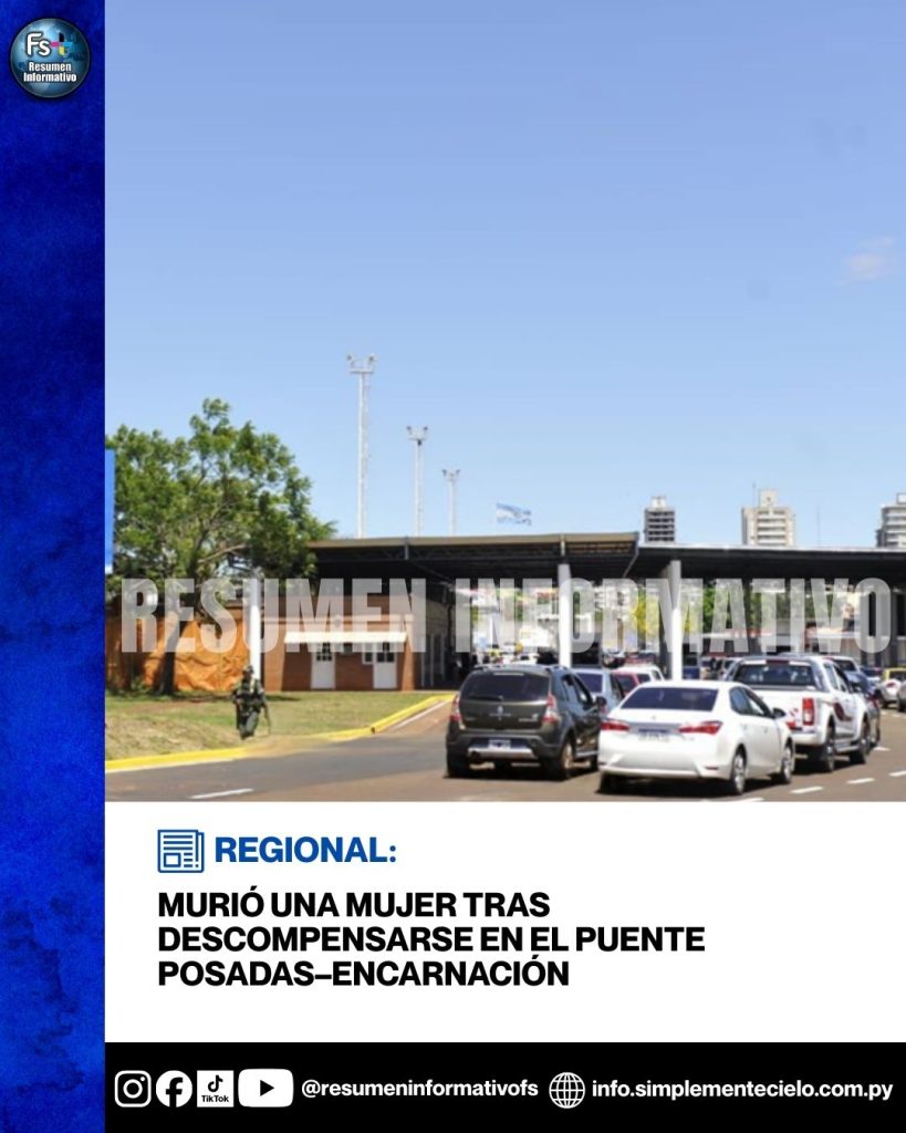 Una mujer murió este lunes en el paso fronterizo Posadas–Encarnación luego de descompensarse mientras hacía la fila para realizar el trámite migratorio, lado argentino. El episodio ocurrió en el sector de control y la víctima cayó al suelo de manera repentina.