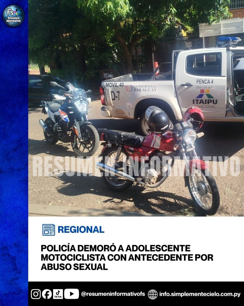 Un adolescente de 16 años, que cuenta con antecedentes por un supuesto hecho punible de abuso sexual en niños registrado en el año 2025, fue demorado en la tarde de ayer durante un operativo de control preventivo realizado por agentes de la Comisaría Cuarta del barrio Poti’y, en la ciudad de Encarnación.