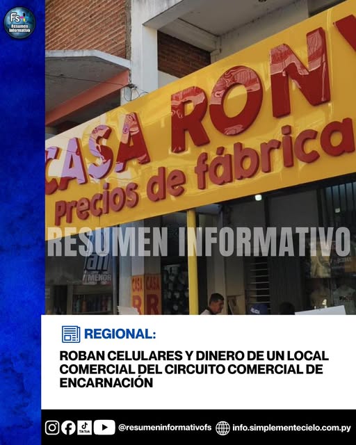 Un nuevo hecho de inseguridad se registró durante la tarde del domingo 8 de febrero en un local comercial denominado “Casa Rony”, ubicado en el Circuito Comercial de la ciudad de Encarnación, generando preocupación entre comerciantes y vecinos de la zona.