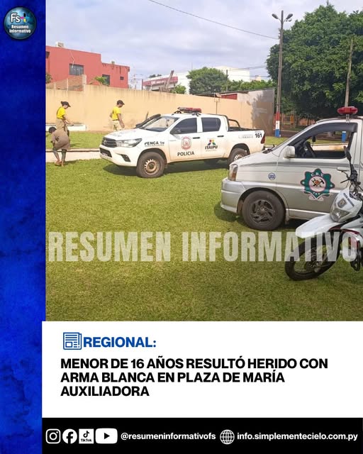Un adolescente de 16 años resultó herido con arma blanca en la tarde de este viernes, tras un violento altercado registrado en la plaza Defensores del Chaco de la ciudad de María Auxiliadora, departamento de Itapúa.