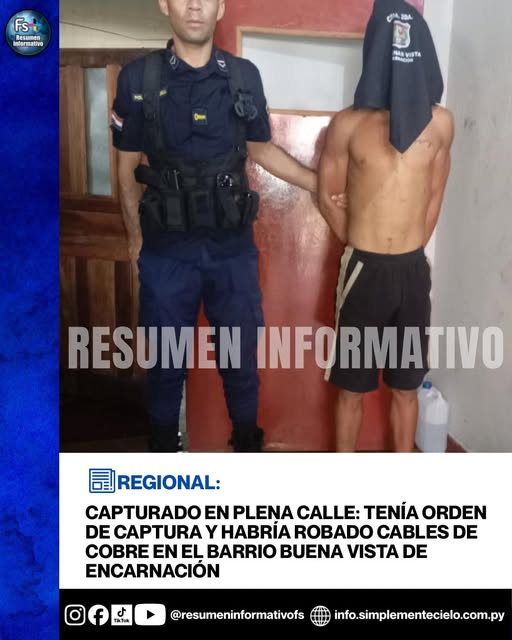 CAPTURADO EN PLENA CALLE: TENÍA ORDEN DE CAPTURA Y HABRÍA ROBADO CABLES DE COBRE EN EL BARRIO BUENA VISTA DE ENCARNACIÓN