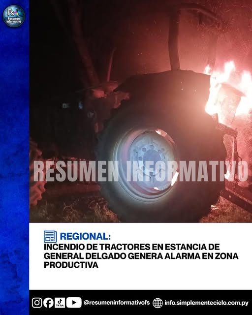 INCENDIO DE TRACTORES EN ESTANCIA DE GENERAL DELGADO GENERA ALARMA EN ZONA PRODUCTIVA