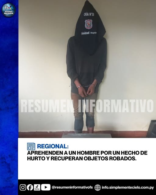 El aprehendido fue identificado como Marcos Ramón Chávez Do Santo, quien no cuenta con domicilio fijo. Del poder del mismo fue recuperado un horno eléctrico de la marca Fischer, de color plateado, denunciado como hurtado por Juan Ramón Toñiolo Caballero, de 40 años, residente en el barrio Villa Nueva.