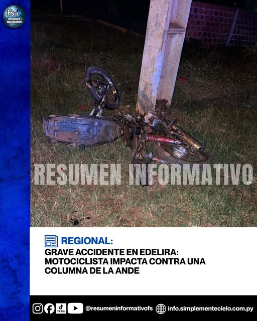 GRAVE ACCIDENTE EN EDELIRA: MOTOCICLISTA IMPACTA CONTRA UNA COLUMNA DE LA ANDE