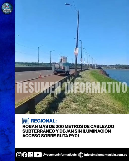 Un nuevo hecho delictivo afecta a la infraestructura pública y vuelve a poner en evidencia la vulnerabilidad de los sistemas de iluminación vial. La Administración Nacional de Electricidad (ANDE) informó sobre el hurto de más de 200 metros de cableado subterráneo que alimentaba la iluminación en un acceso sobre la Ruta PY01.