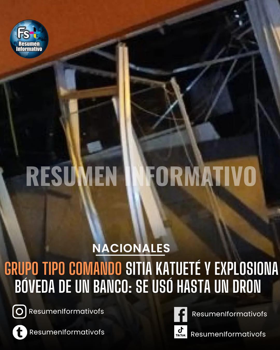 Un grupo tipo comando, conformado por 15 a 20 personas, asaltó durante la madrugada de este jueves la sucursal del Banco Itaú, ubicada en el barrio Centro de la ciudad...