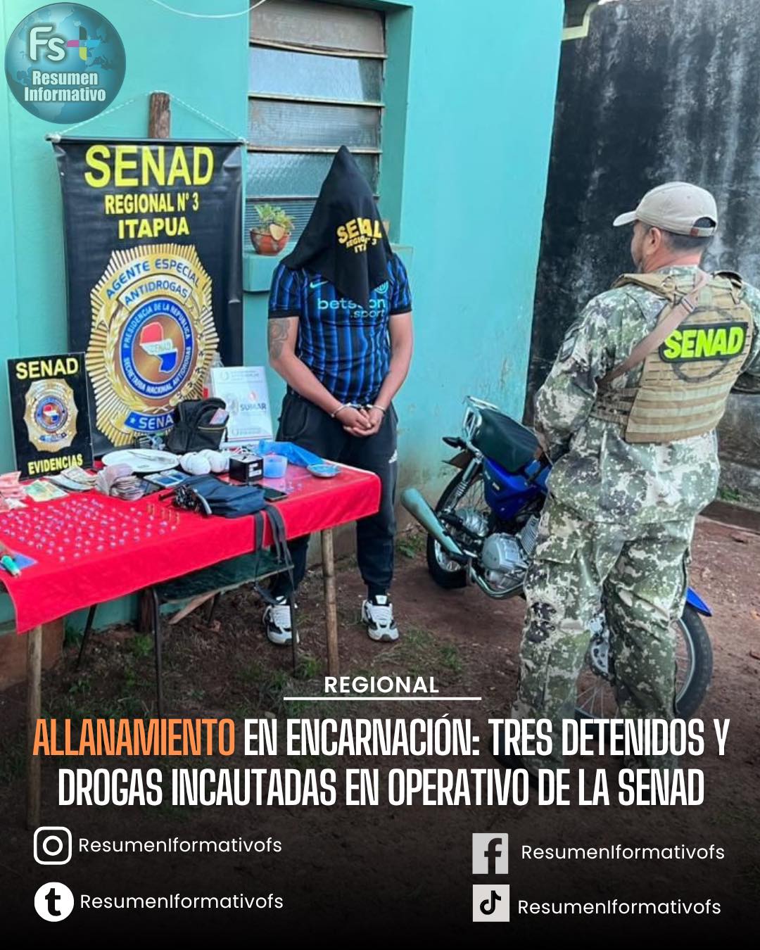 ALLANAMIENTO EN ENCARNACIÓN: TRES DETENIDOS Y DROGAS INCAUTADAS EN OPERATIVO DE LA SENAD.