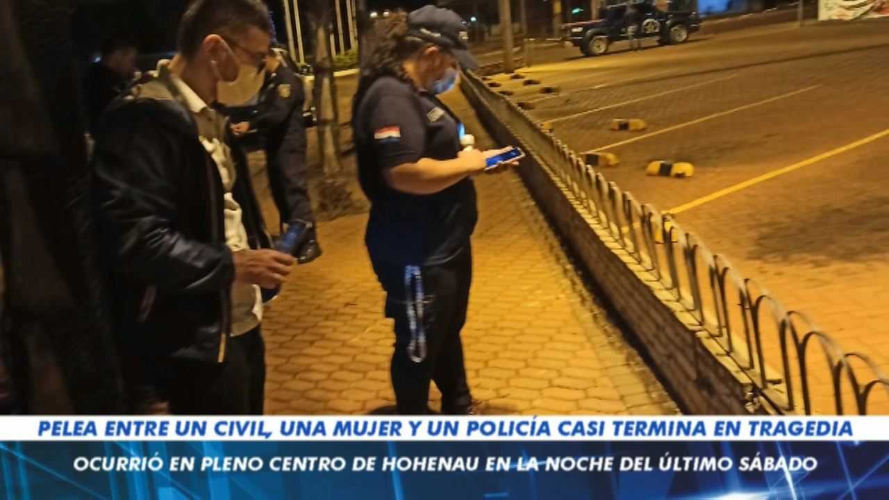 PELEA ENTRE UN CIVIL, UNA MUJER Y UN POLICÍA CASI TERMINA EN TRAGEDIA.