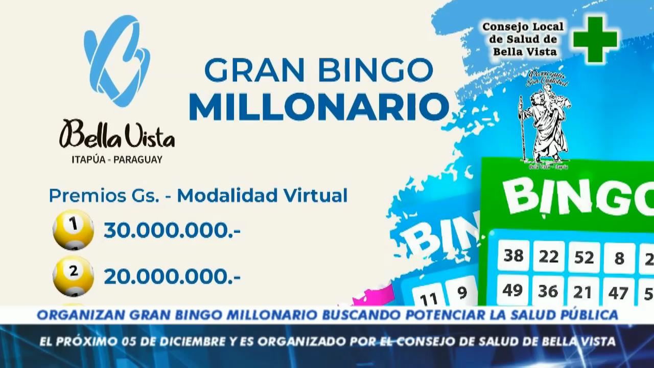ORGANIZAN UN GRAN BINGO MILLONARIO BUSCANDO POTENCIAR LA SALUD PÚBLICA EN BELLA VISTA. El gran Bingo millonario es organizado por la comisión del Consejo de Salud Local, el objetivo es...