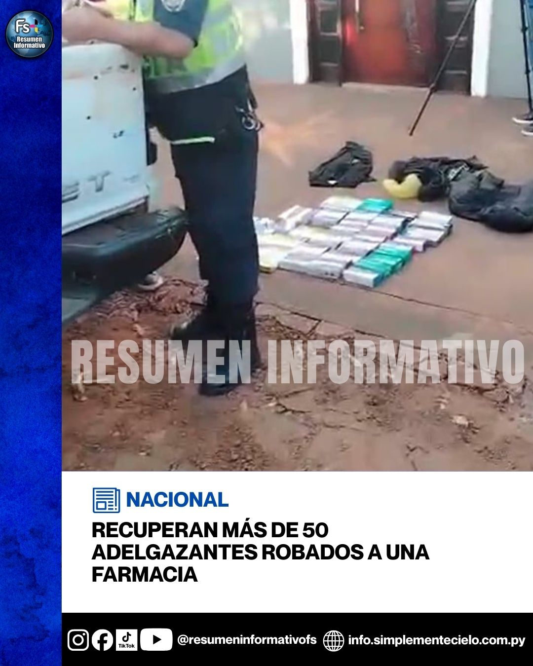 RECUPERAN MÁS DE 50 ADELGAZANTES ROBADOS A UNA FARMACIA