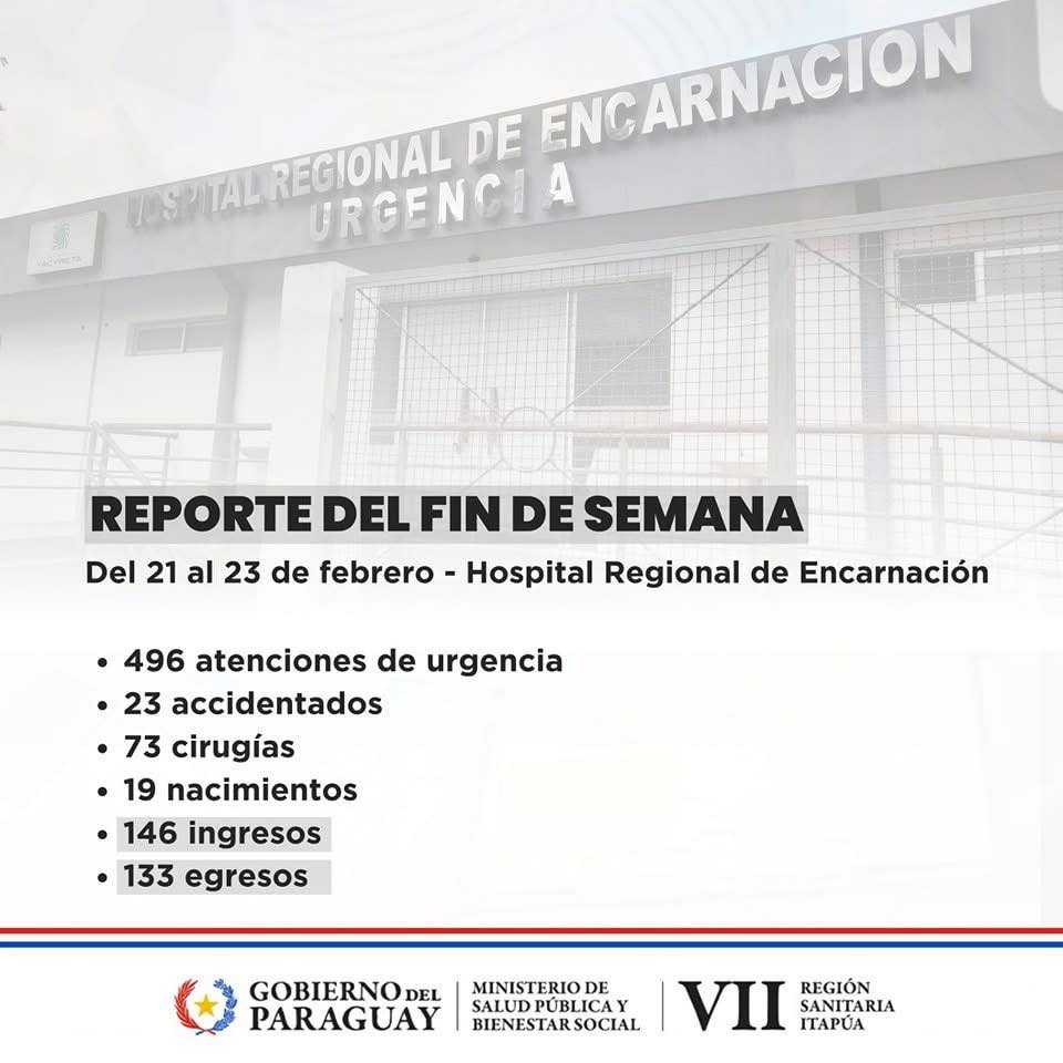 REPORTE DE ATENCIONES MÉDICAS EN EL HOSPITAL REGIONAL DE ENCARNACIÓN DURANTE EL FIN DE SEMANA