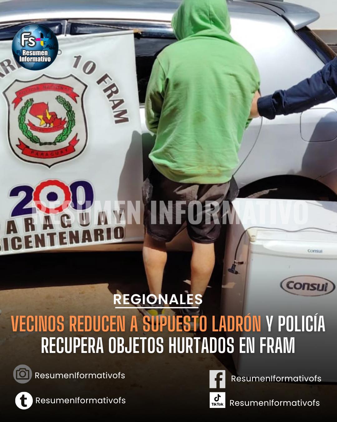 Agentes de la Comisaría 10ª de Fram aprehendieron este viernes a un hombre con antecedentes por hurto agravado, luego de ser reducido por vecinos tras un presunto hecho de hurto...