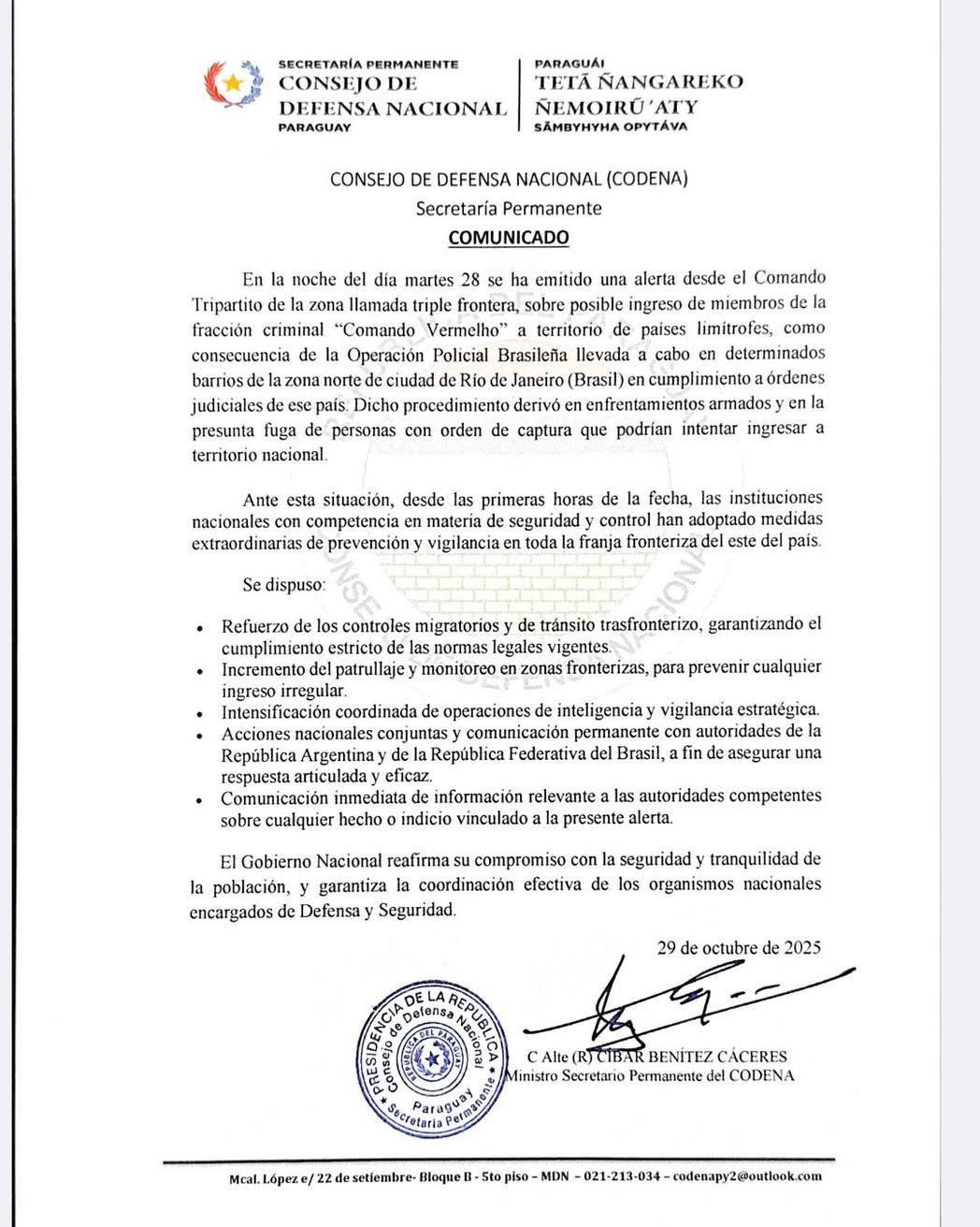 La Policía Nacional activó la alerta roja ante información de inteligencia que advierte sobre el posible ingreso a territorio paraguayo de integrantes del grupo criminal brasileño Comando Vermelho. Según los...