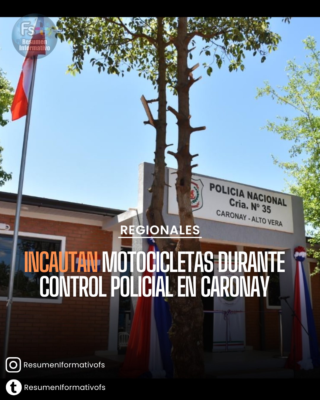 INCAUTAN MOTOCICLETAS DURANTE CONTROL POLICIAL EN CARONAY.