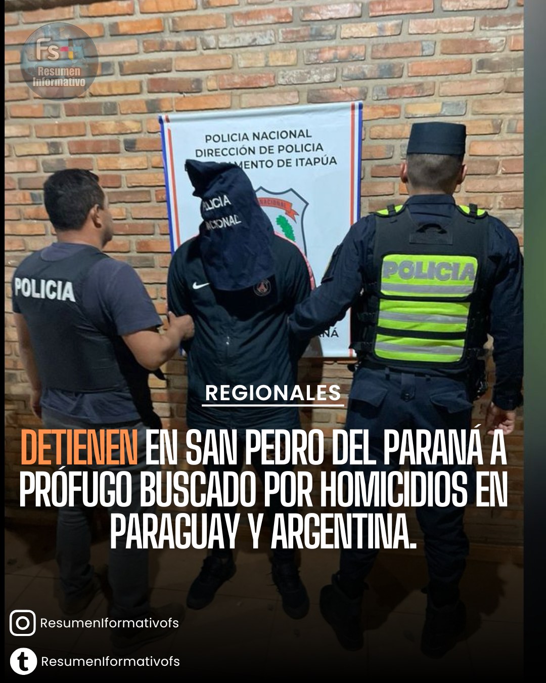 DETIENEN EN SAN PEDRO DEL PARANÁ A PRÓFUGO BUSCADO POR HOMICIDIOS EN PARAGUAY Y ARGENTINA.