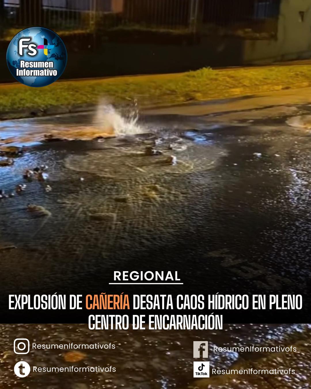 EXPLOSIÓN DE CAÑERÍA DESATA CAOS HÍDRICO EN PLENO CENTRO DE ENCARNACIÓN.