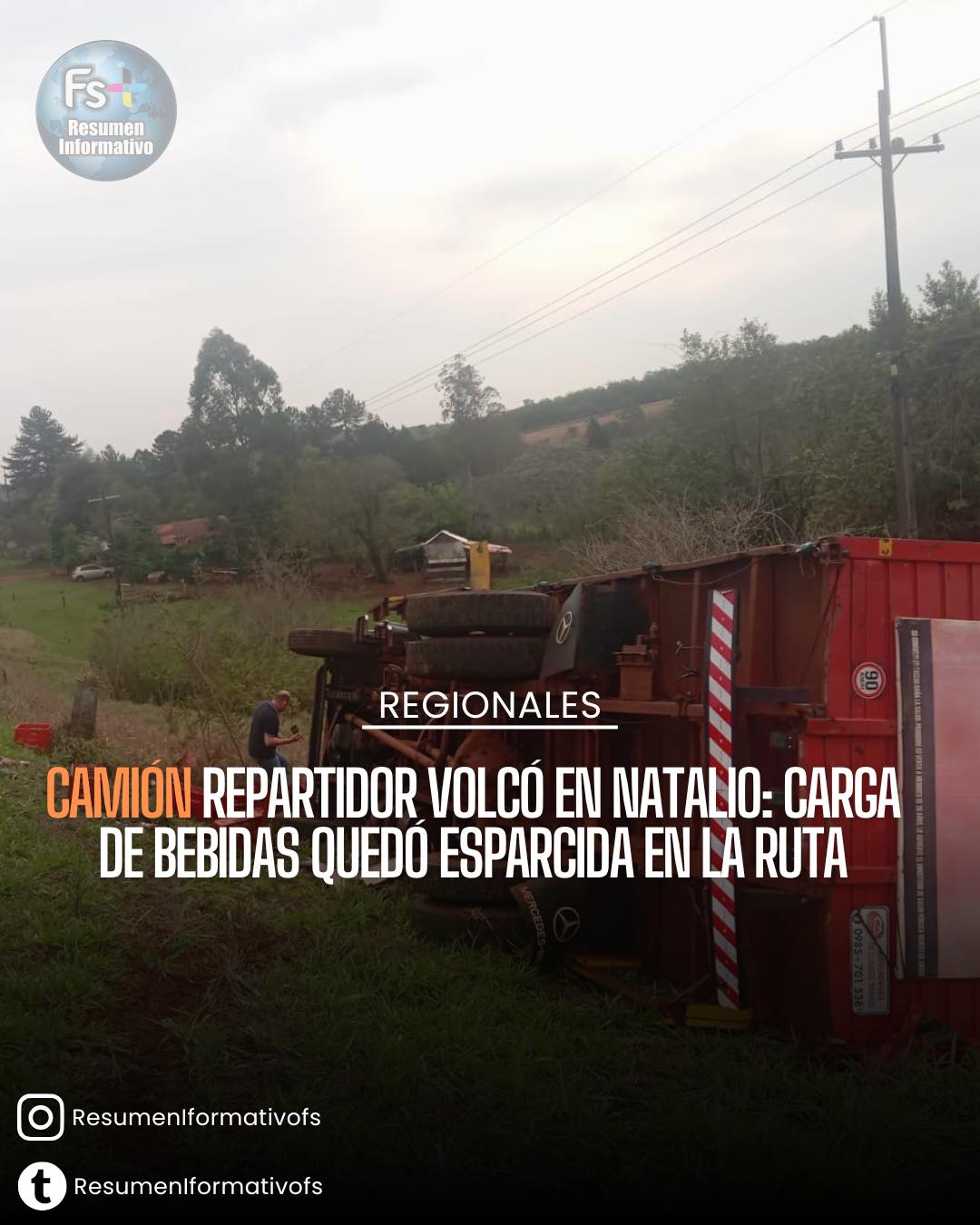Un camión repartidor de bebidas volcó en la tarde del jueves sobre la Ruta PY07, en el barrio Santa Rosa del distrito de Natalio. Afortunadamente, el conductor resultó ileso. El...
