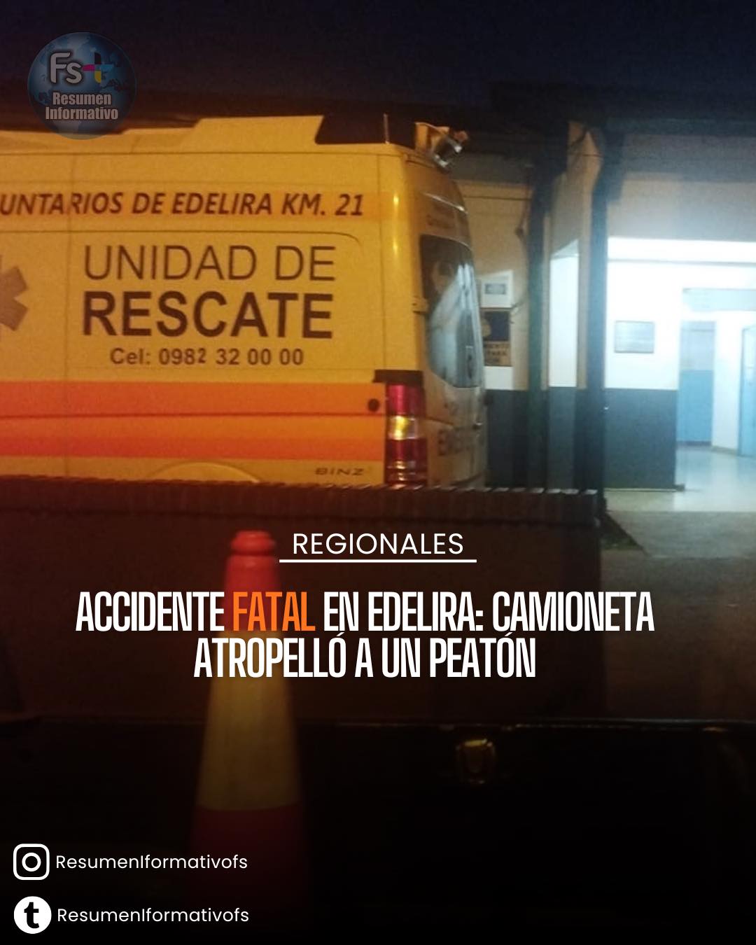 Un trágico accidente de tránsito se registró en la noche del jueves en el distrito de Edelira, departamento de Itapúa, donde un peatón perdió la vida tras ser embestido por...